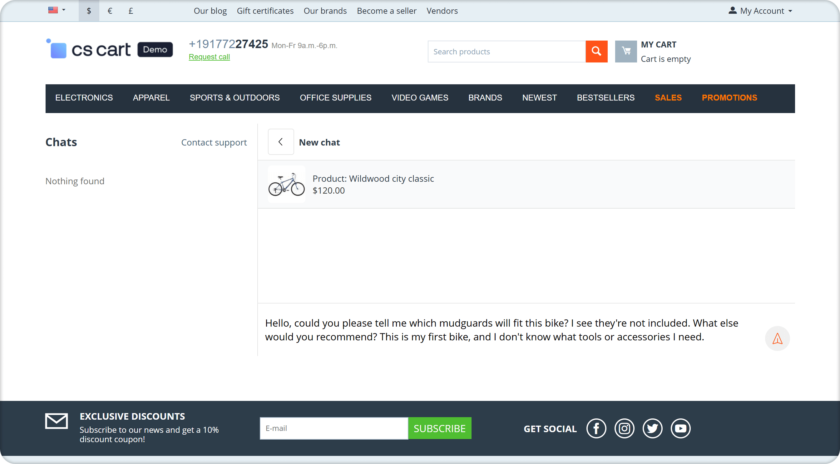 - Instant communication: customers can easily reach out to vendors or administrators regarding orders, products, or any other questions.