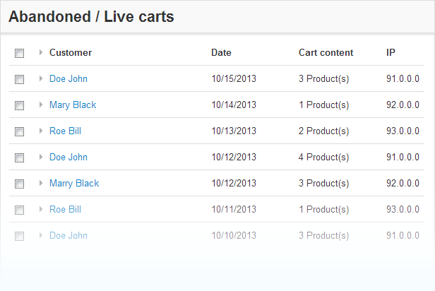 С помощью этой функции Вы можете отслеживать товары, которые были добавлены в корзину, но заказ не был оформлен. И все это в режиме реального времени!